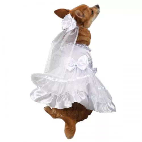 Let pets take part in the wedding day celebration! This exquisite white satin East Side Collection Yappily Ever After Wedding Dress for dogs includes a coordinating headpiece with an adjustable, easy fit strap.